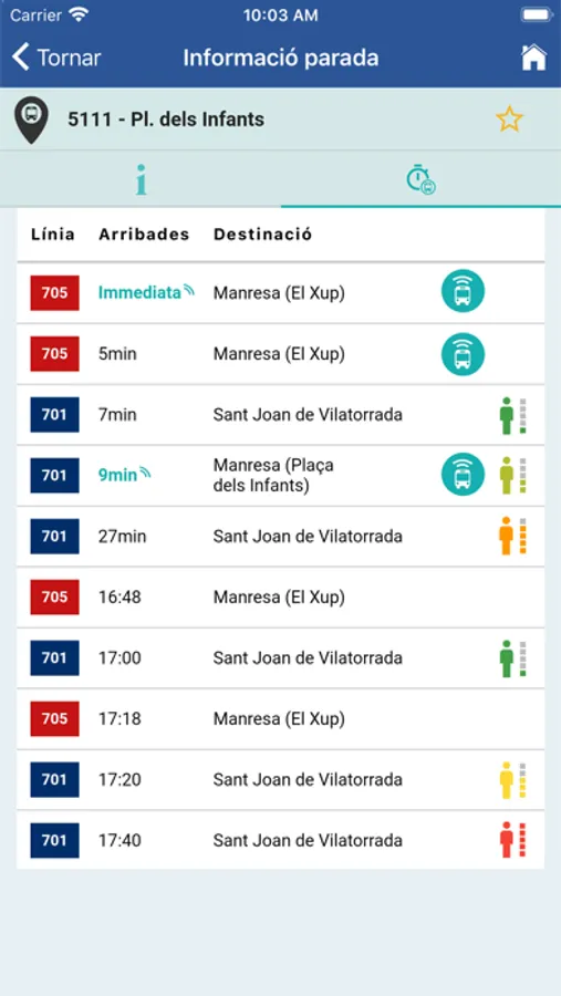 • Consulta el tiempo de paso de todas las líneas y todas las paradas