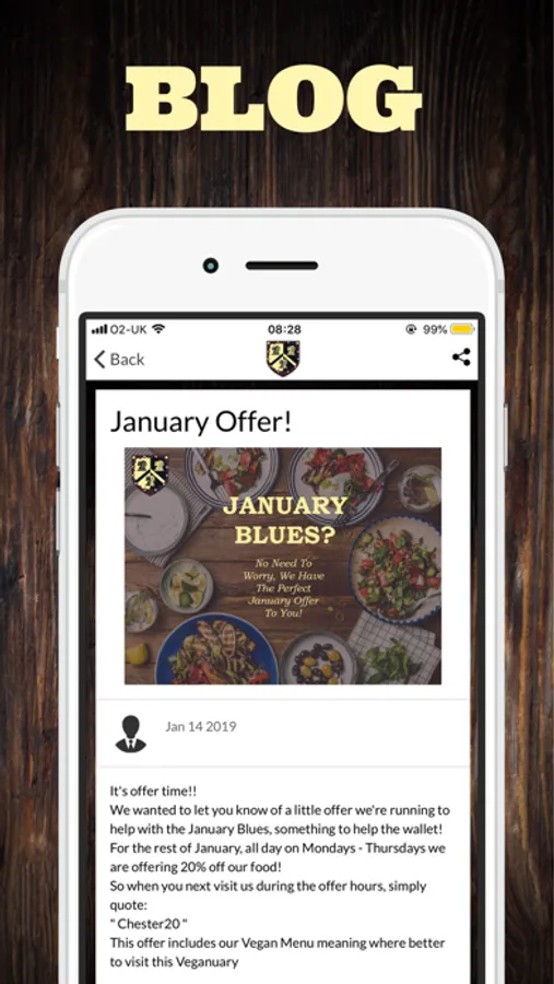 Book your table live in our restaurant using our brand new app! Checkout our menu before you arrive to see the dishes and drinks we have on offer for you. Keep up to date on our latest news, offers and events on our blog page to never miss a thing.
