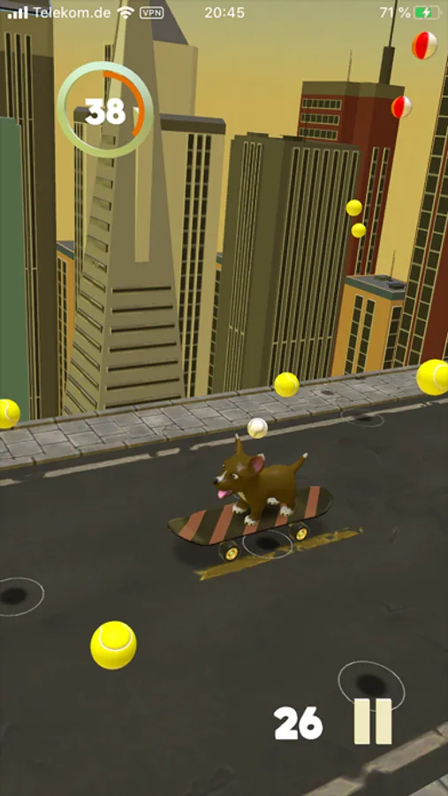 Dog Skate Battle Pro is a fast-paced 1 minute action skill game for anyone who likes dogs.