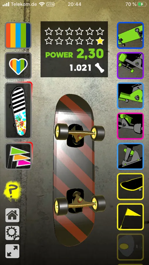Collect deck stickers, pennants and style your skateboard!
