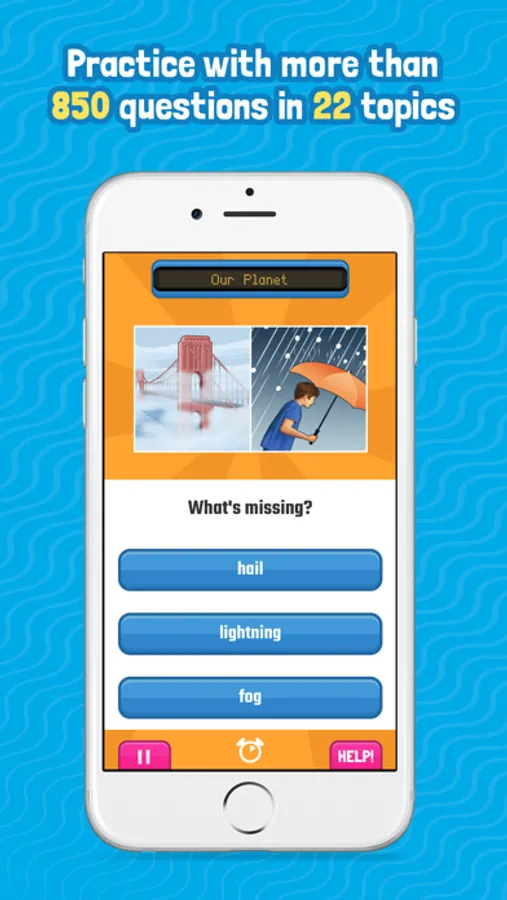 • Hundreds of questions across 22 topics: animals & plants, art, our planet, math, history, family & friends, our neighborhood, needs & wants, science, music, living things, machines & technology, space, music & poetry, culture, animals, technology, art & music, architecture, language & communication, behavior & emotions and stories