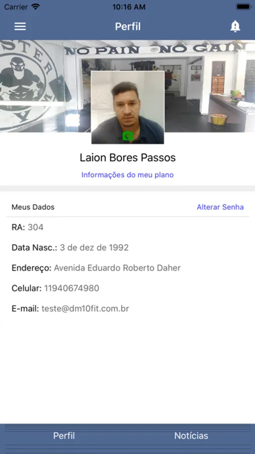 Consulta de notícias, avaliações físicas, pagamentos e horários.