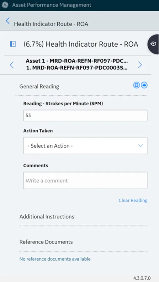 Predix APM Rounds allows workers to collect data in the field using mobile devices. Through automated alerting built into the solution, the user will receive real time instructions for what to do and how to react to the situations in the field. Recommendations can also be created to follow up on any issues identified in the field. Data collected while the mobile device is offline is saved securely on the device until reconnected and synchronized with Predix APM.