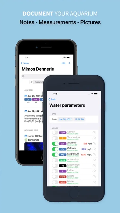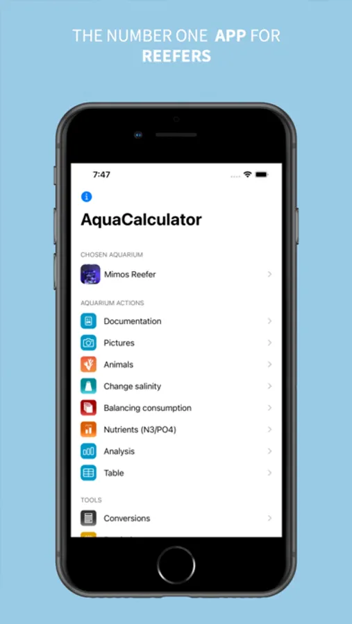 The app for documentation and management of your aquarium. The main focus is on saltwater aquariums but also their freshwater pools can of course be documented with the AquaCalculator.