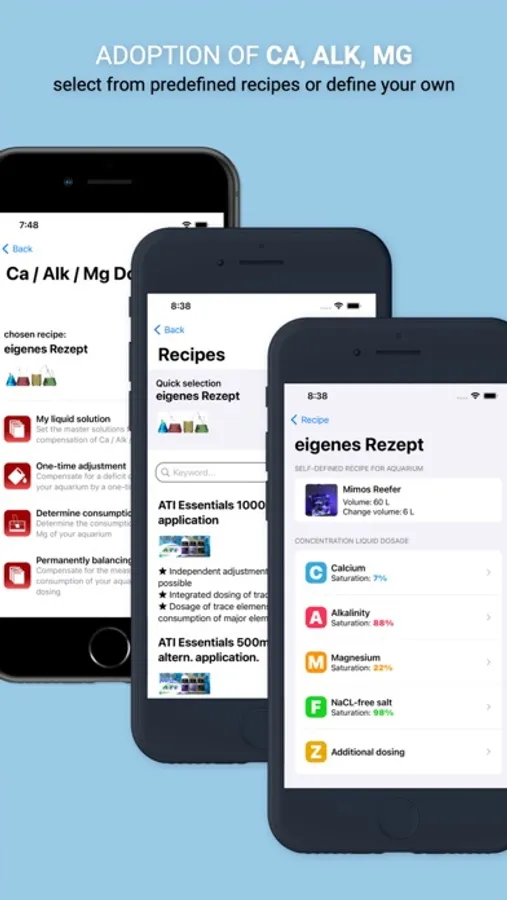 Supports recipes from Aquafair, Aquaforest, Coral-Care, Fauna Marin, MT Aquaristics, Nyos, H.W. Balling, Price Aquaristics, A.Glaser, Red Sea, Sangokai, Tropic Marin, Fritz ProAquatics, Two Little Fishies, Kent Marine, Seachem, Brightwell, Continuum Aquatics, ESV and Self-Defined.