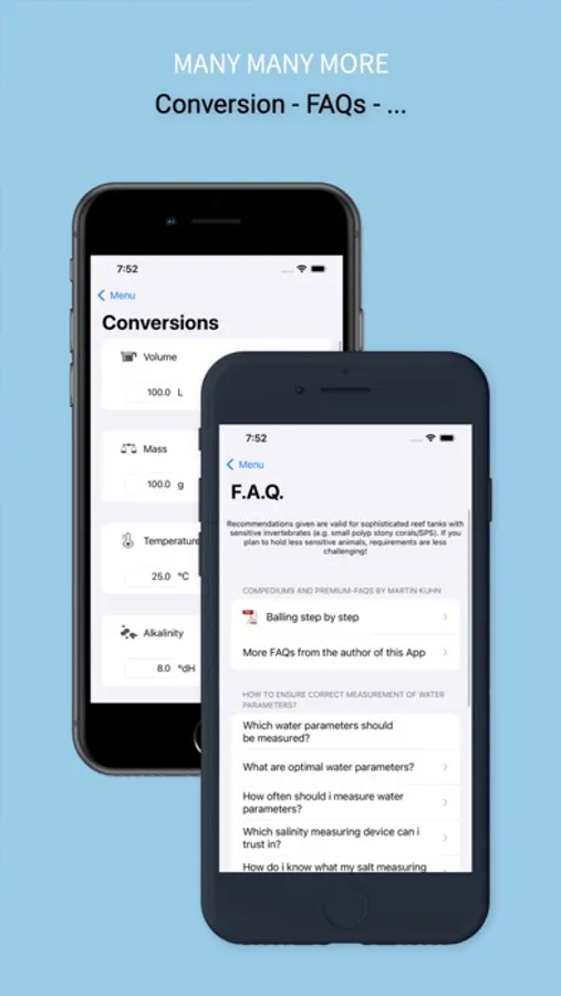 - Mini-FAQ: answers the most important questions about adjusting the water values and thus the successful care of reef aquariums. Including ten thousand times downloaded seawater FAQs by Martin Kuhn (Water Parameter FAQ, Anemone FAQ, Plague Master FAQs 1 and 2)