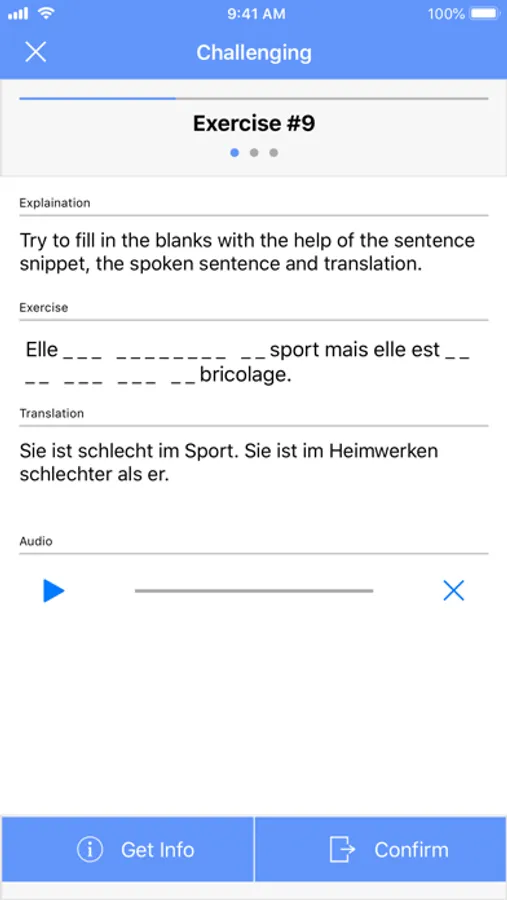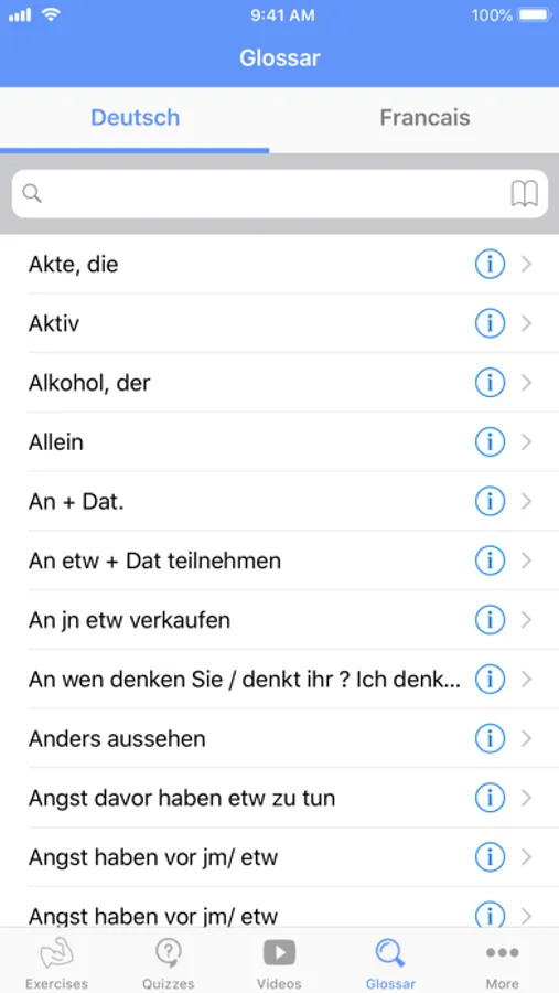 Appell is a language learning app. Its aim is to support students during their language courses. Typical supporting tools are cloze exercises, MC-Quizzes, translations, voice records, video information and much more.