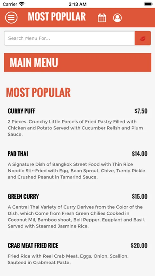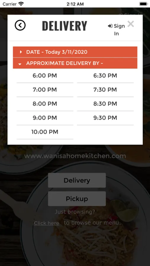 Mobile food ordering application for Wanisa Home Kitchen