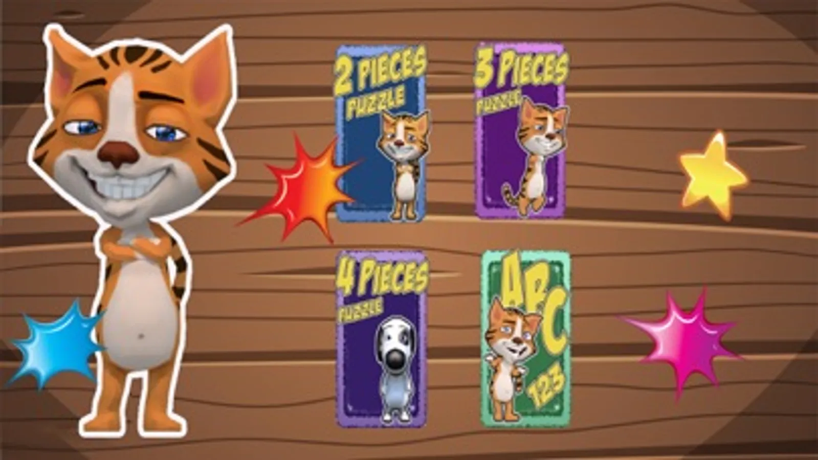 The game has over 75 different drag and drop puzzles, Puzzles start with simple two pieces -picture then advances into four pieces puzzle to teach the toddlers pattern recognition and fine motor skills. English Letters and numbers are included