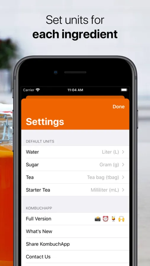 • Ingredients' units can be configured for each ingredient and brew individually.