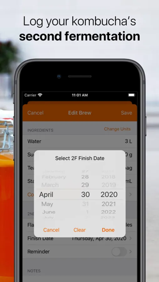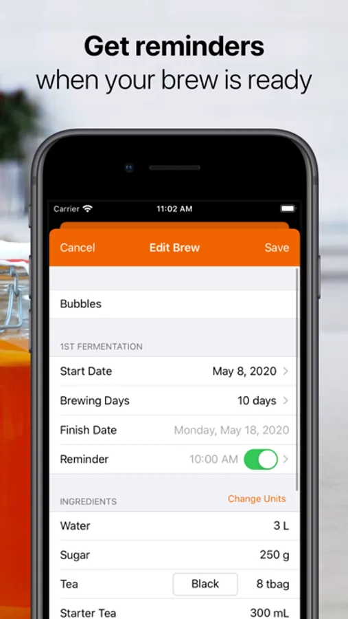 • Log and set a reminder for your kombucha's second fermentation (full version).