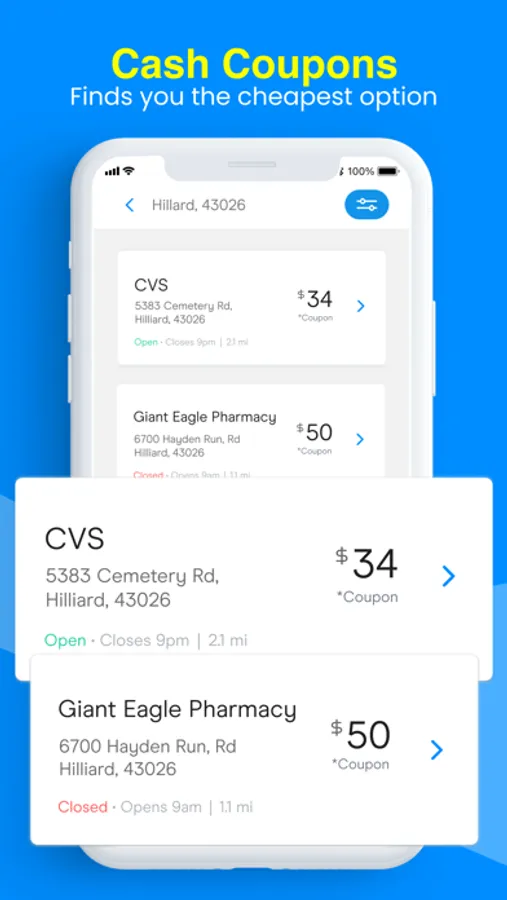 From your phone take back control over your prescription, and select the best pharmacy for you based on price, location and opening hours.