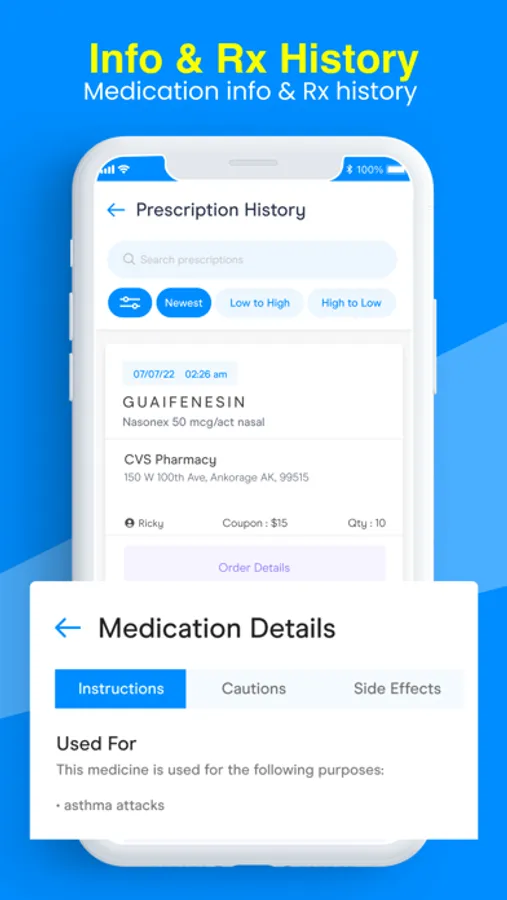 Rather than sending your prescription to your CVS or Walgreens, ask your doctor to send your prescriptions to your phone by selecting "ScalaMed" pharmacy (address in Florida). Within 1 second, you will receive a text - click on the link and download the ScalaMed App.