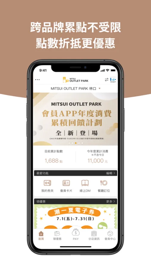 加入會員即可享點數累積及折抵,及不定時活動訊息與店舖優惠。