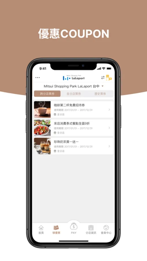 會員可於我的優惠中查看所擁有之票券,只要出示票券即可兌換優惠,給您最多樣豐富的優好康。