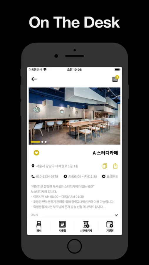 스터디카페와 프리미엄독서실을 이용할 수 있습니다.