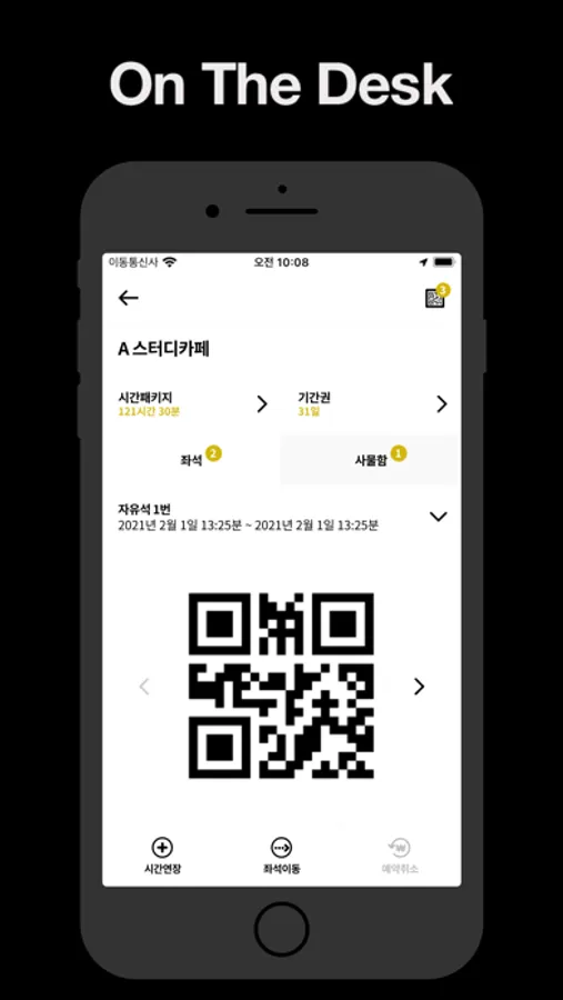 * 어플리케이션 내에서 시간 패키지를 이용한 좌석 결제시, 환불이 불가합니다. 해당 내용은 어플리케이션 실행 후 로그인을 한 뒤 나타나는 메인페이지(자동로그인은 바로 나타나는 페이지입니다.)의 가장 하단에 있는 '온더데스크 이용가이드'에서 확인 할 수 있습니다.