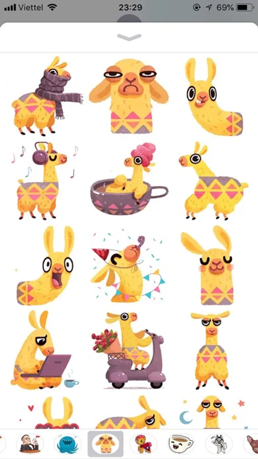 SET FULL HIPSTER LAMA CUTE EMOJI PUN FUNNY STICKERS EMOTION PACK