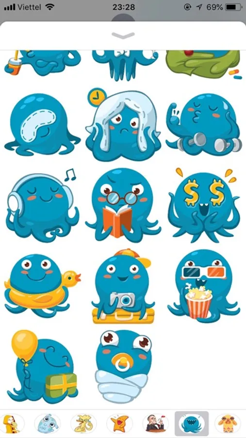 SET FULL OCTOPUS CUTE EMOJI PUN FUNNY STICKERS EMOTION PACK
