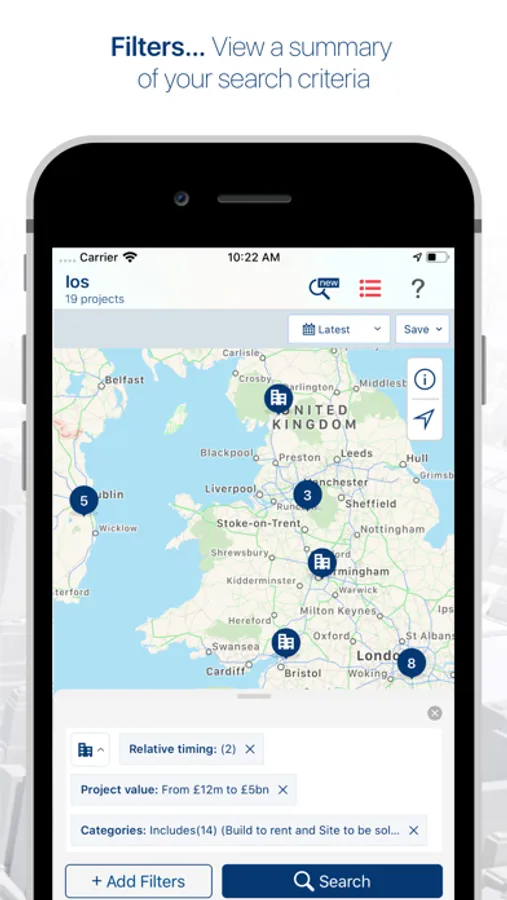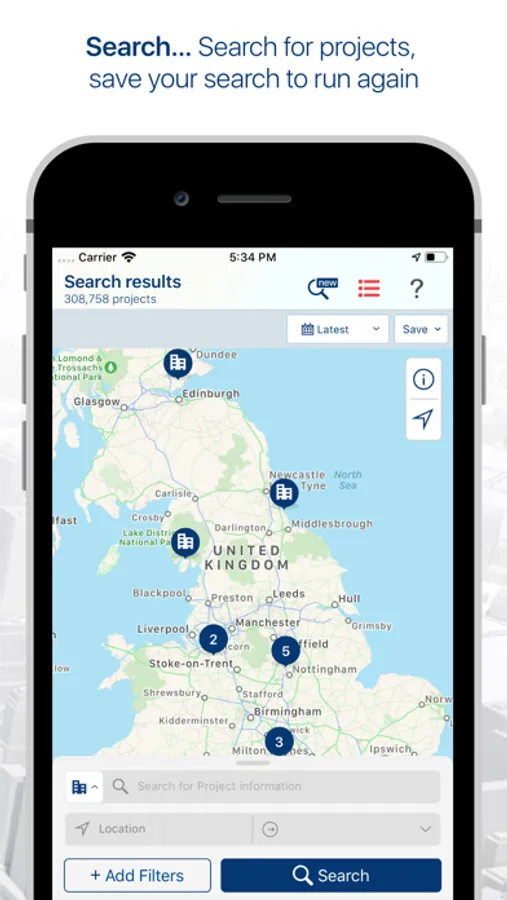 * Use filters to optimise your search, for example find projects in a particular sector, development stage or timing