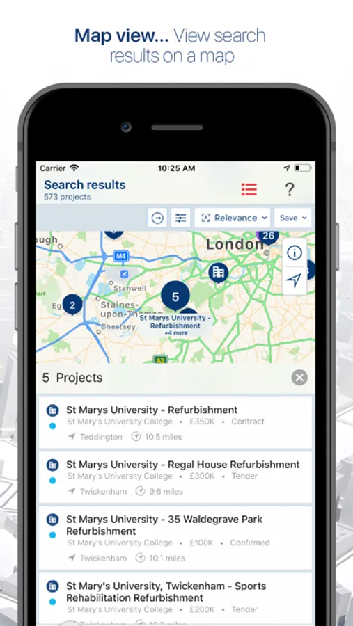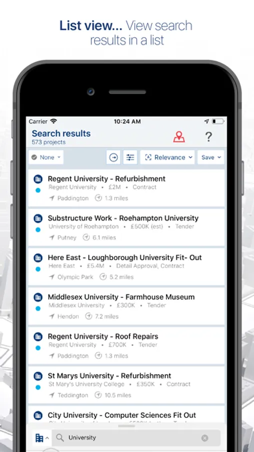 * Discover leads by finding relevant projects and companies and display results in a list or on a map