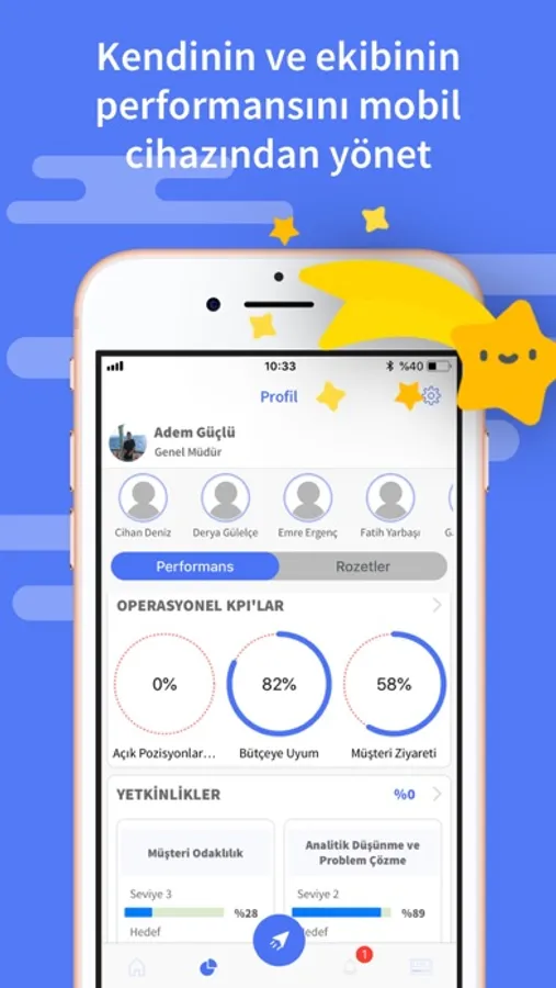 * Ayrıca kendinizin ve ekibinizin performansını mobil cihazınızdan takip ederek şirketinizin hedefleri doğrultusunda ilerlemesini sağlayabilirsiniz.