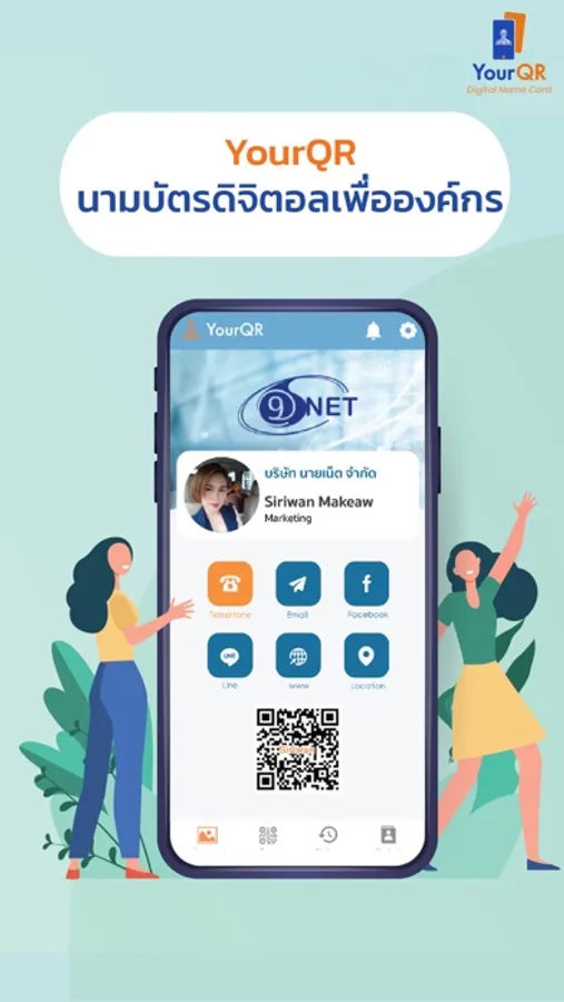 - Create your digital name card right from application and share it with others, it can be scanned with YourQR application and other common qr scanner apps.