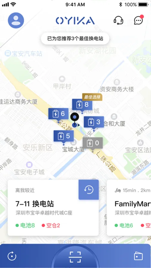 oyika换电为电动车用户提供高效,便捷的换电服务,使用oyika换电服务,不用担心电动车续航,充电不便的问题,电动车智能化,实时追踪定位电动车的位置,帮助用户找回车辆。