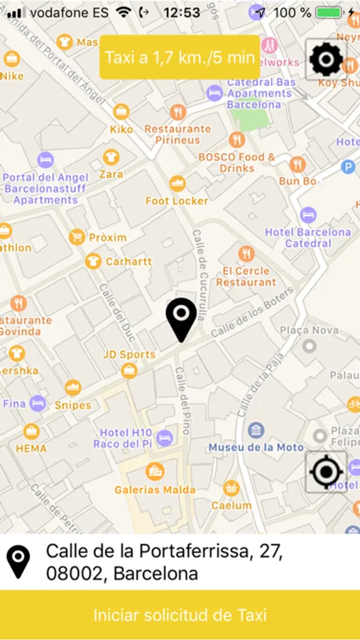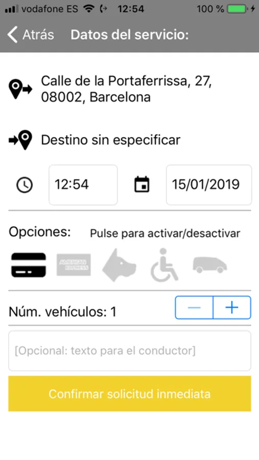 Una vez indicado su número de teléfono y activada la localización que proporciona su dispositivo, podrá solicitar su vehículo. Siempre se le indicará el taxi más cercano y, una vez solicitada la reserva, podrá ver el número de licencia, vehículo y nombre del conductor. Además, podrá ver la distancia a la que se encuentra su taxi hasta que sea recogido en el lugar indicado.