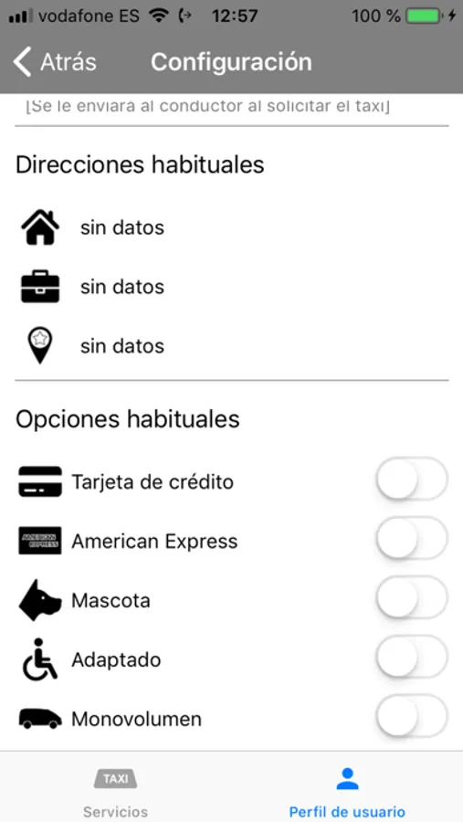 También puede realizar reservas anticipadas, personalizar preferencias y direcciones habituales para el servicio.