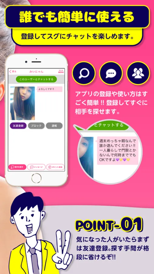 登録してすぐに相手を見つけてチャットができるので、