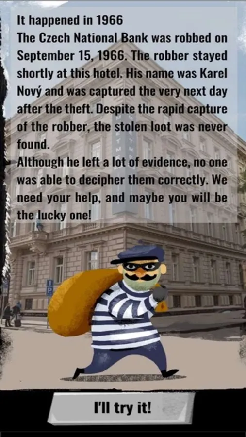 Are you a guest of hotel MeetMe23 in Prague? Test your logical thinking skills in a classic exit game at the hotel MeetMe. Follow the trace of an ancient robbery and try to overtake the investigator at that time, who couldn’t solve this case ... And there is nice reward waiting for you …