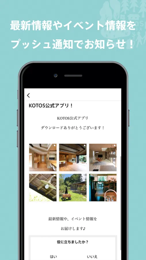 このアプリではプッシュ通知などで家づくりに役立つ情報をお届けします。