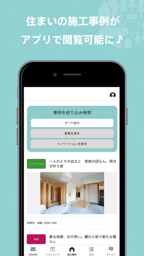 ・住まいの施工事例やコトスの課外活動「部活動」をいつでも閲覧可能です!
