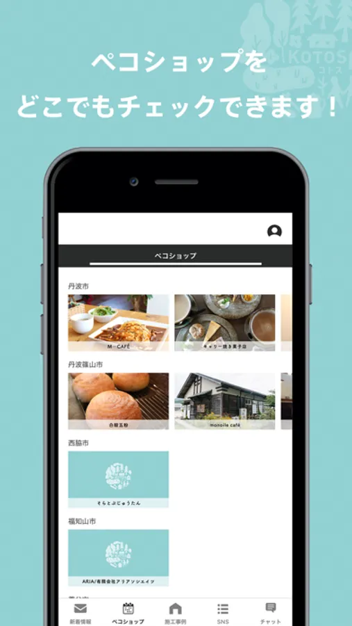 ・コトスの商品券がつかえる地域のおすすめショップ「ペコショップ」がどこでもチェックできます!