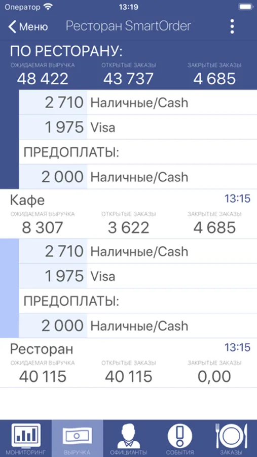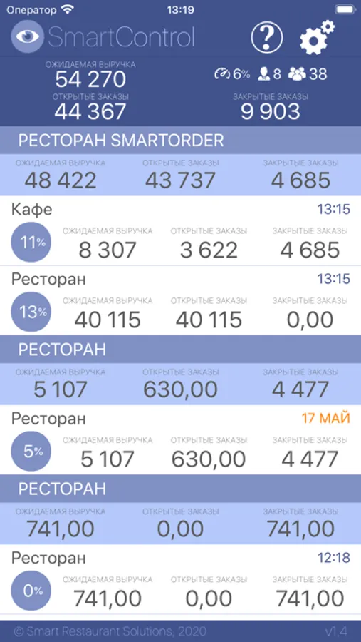 Этот замечательный инструмент позиционирован на достаточно большой круг сотрудников - это может быть владелец своего бизнеса, который хочет в режиме реального времени контролировать ситуацию или управляющий ресторана, добросовестно исполняющий свои обязанности. Это может быть даже менеджер на своем рабочем месте. Пользуясь нашим мобильным приложением SmartControl вы перемещаетесь в пространстве, и при этом всегда знаете о своем ресторане ВСЕ!