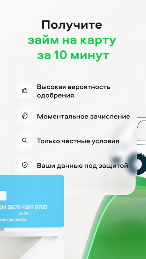 Сервис кредитования, который учитывает вашу кредитную историю и бесплатно подбирает кредиты наличными с высокой вероятностью одобрения среди 20 банков, а также экспресс микрозаймы без процентов. Он позволяет отправить заявку, рассчитать условия, получить одобрение за пару минут и оформить кредит онлайн.