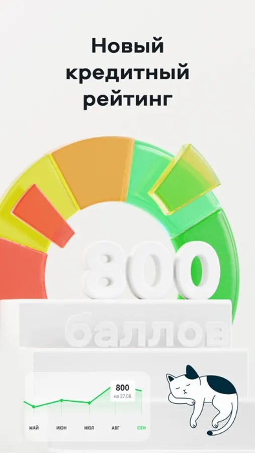 Сервис рассчитывает вероятность получения кредитов онлайн на основе вашей кредитной истории. Возможности сервиса: обновляемый кредитный рейтинг на главном экране приложения, рекомендации по его улучшению, расчёт долговой нагрузки, кредитная история, график изменений рейтинга и уведомления в случае изменений. Проверить кредитный рейтинг можно бесплатно.