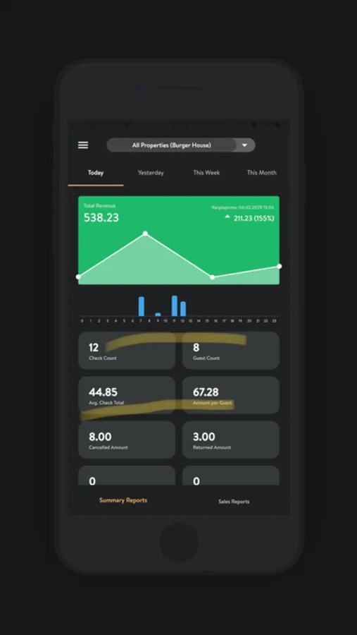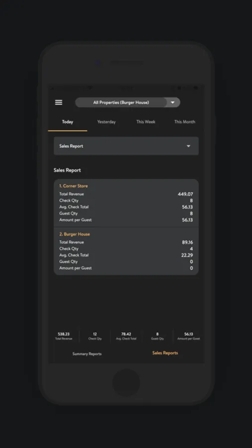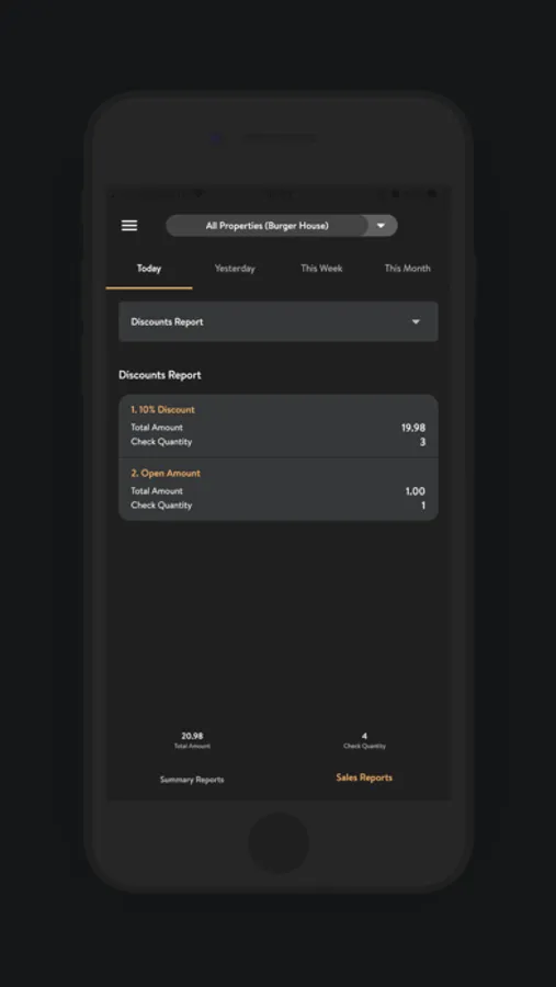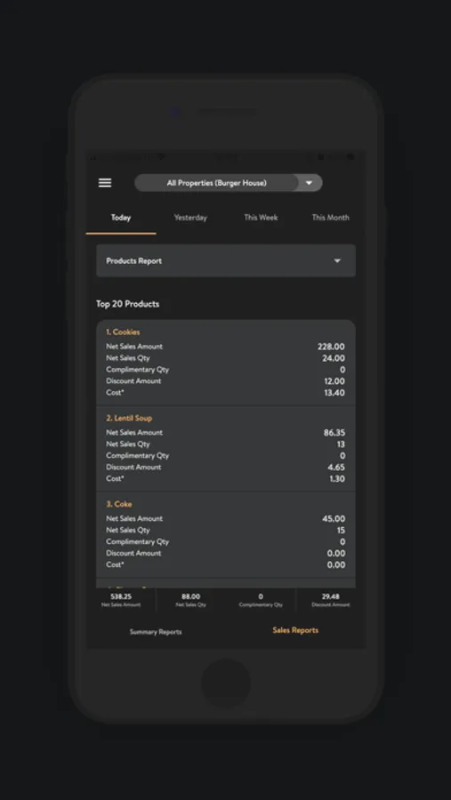 Get reports for the current day, the previous day, weekly and monthly sales with one click.