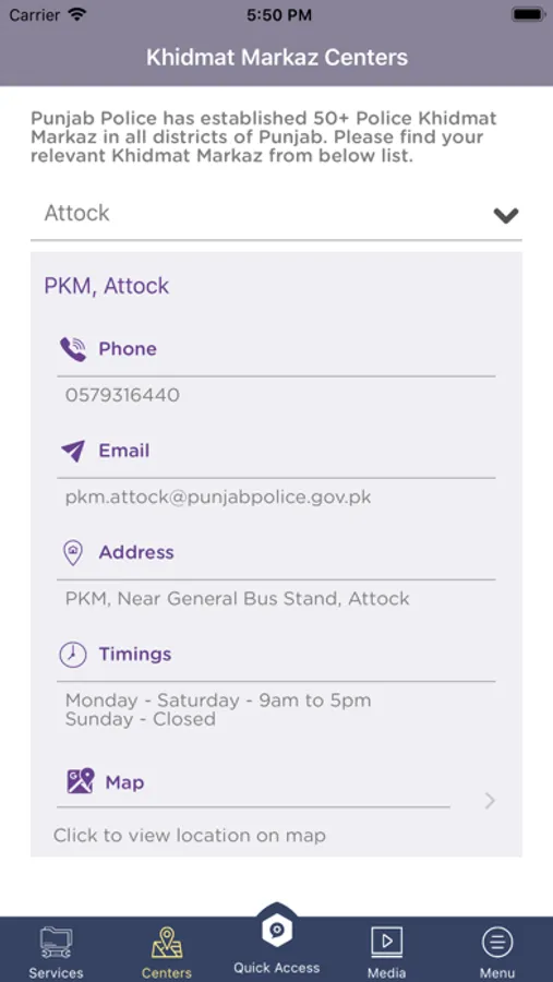 This application facilitates citizens by providing information about Khidmat Marakizes established by Punjab Police.
