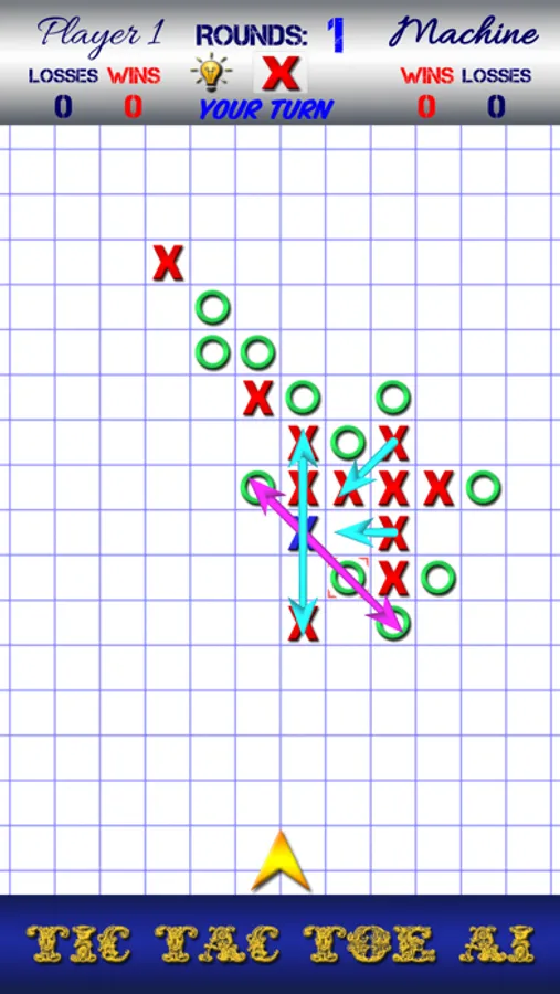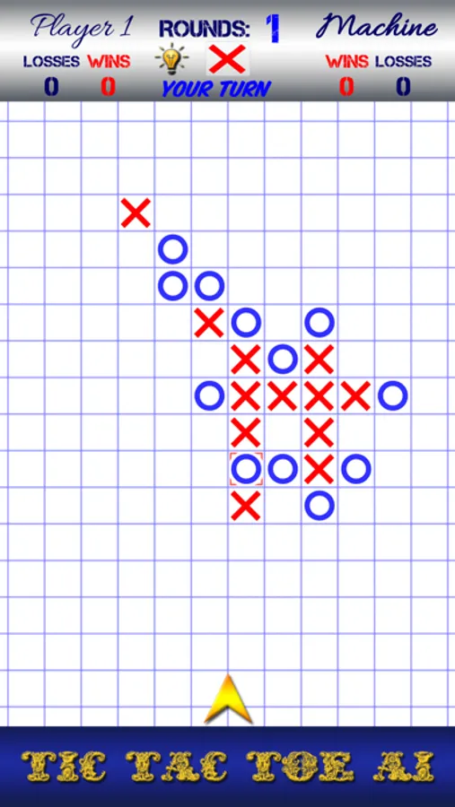 Tic Tac Toe AI is a Intellectual Game with simple playing rules. The player will win in each round if he/she can gain a consecutive series of 5 X (or O) symbols in a row on a squared paper sheet (graph paper). There are 10 rounds in each game match and those who can gain 6 earliest rounds will be the winner.