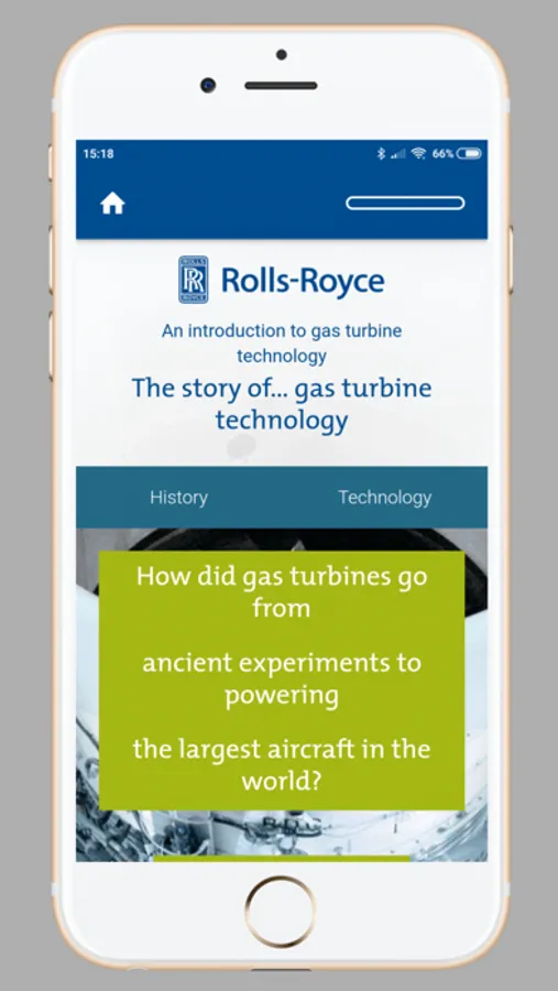 The Rolls-Royce Introduction to Gas Turbine Technology App will introduce you to gas turbine technology and its evolution throughout Rolls-Royce businesses.