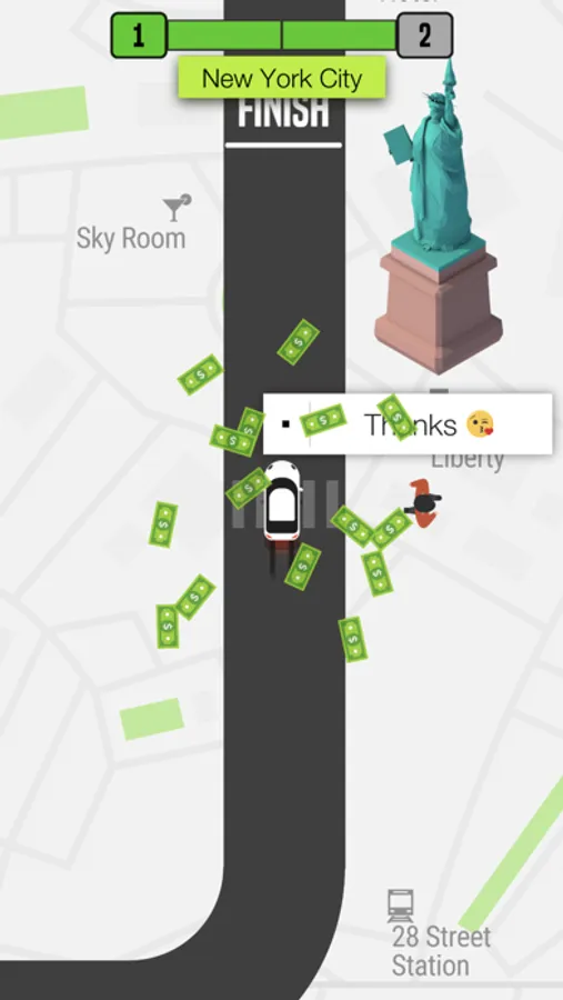 Pick up and drop off customers to earn money and level up. Explore the world and discover new monuments.