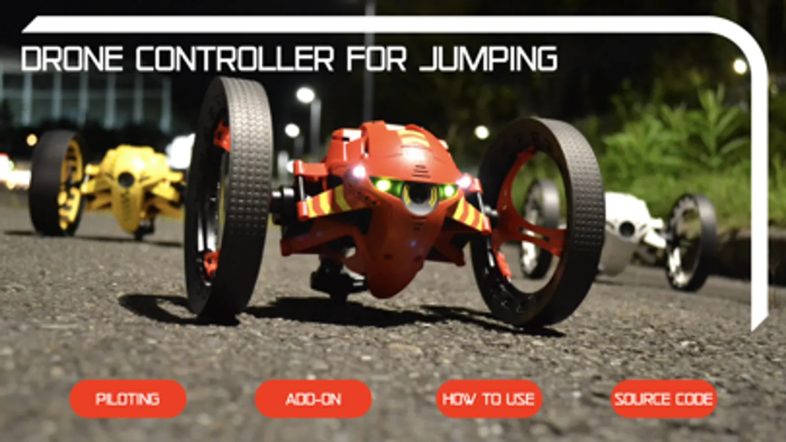 Download Drone Controller for Jumping Drone, the app that allows you to access advanced settings and pilot your Parrot Jumping Sumo / Jumping Race Drone / Jumping Night Drone.