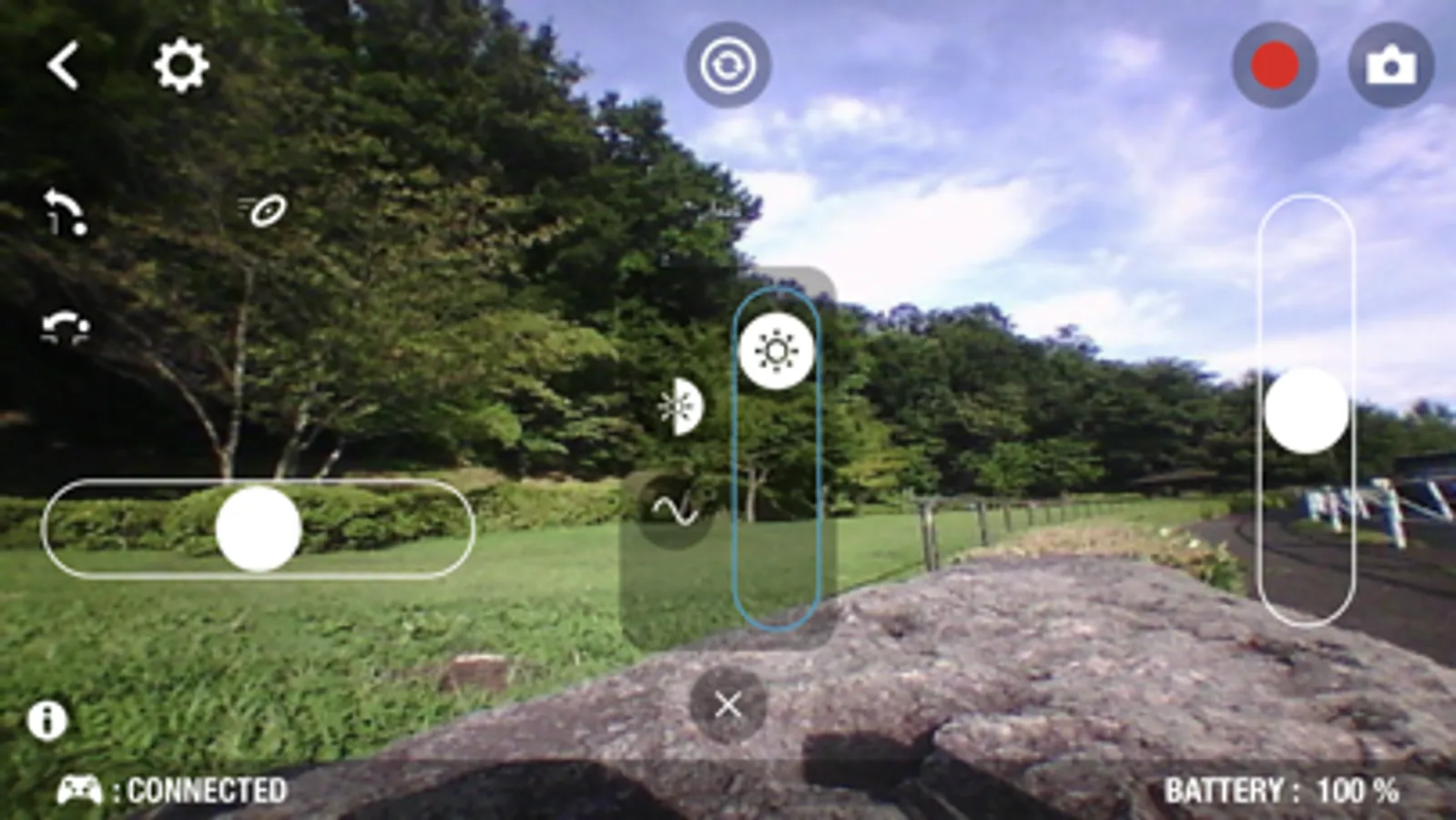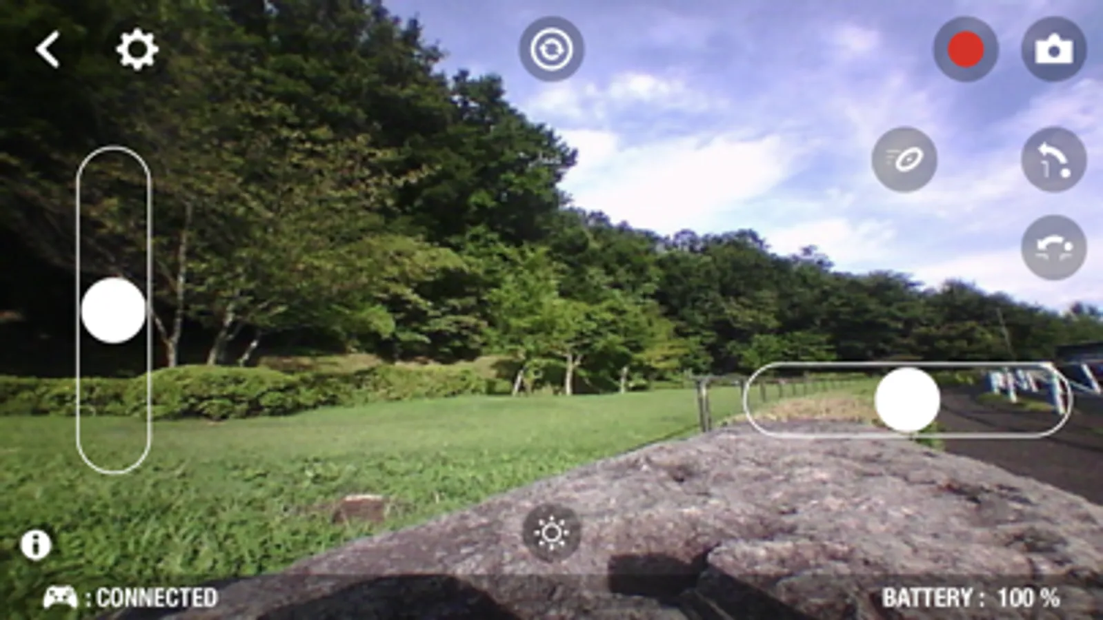 This app arrows you to use one handed joystick mode, two handed slider control mode(Basic mode), inverted layout, MFI Game Controller, etc.