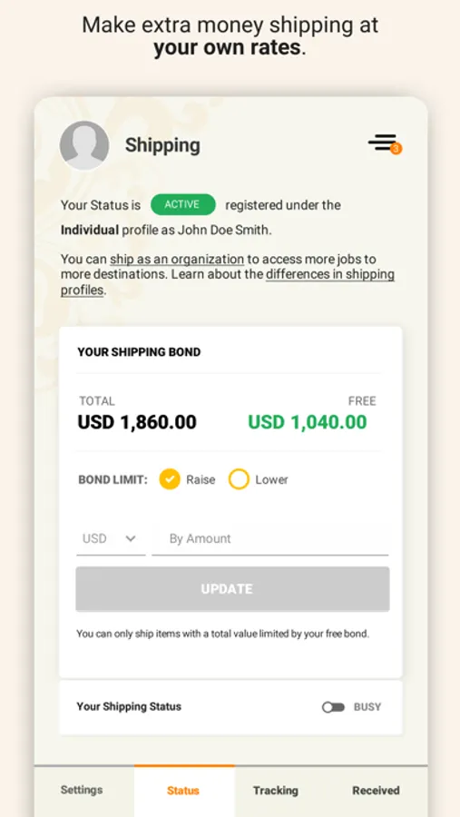 • Add and monitor their shipping bond. This bond is reduced with a temp charge to the shipper's OlyCash account for the value of items in transit by the shipper. The shipper can transport items with a combined value to the limit of their free/available bond.