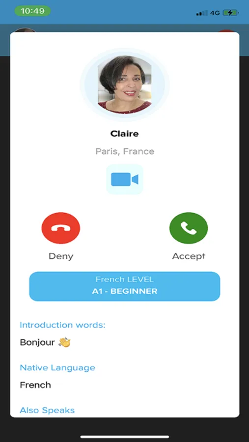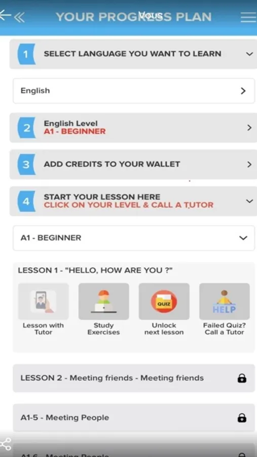 1. Individual language lessons given by tutors from all over the world. No appointment needed, just call any available tutor from the list and your lesson of the day will come up to his screen. After the call, complete your exercises and quizzes on app to unlock next lesson. Call as many different tutors as you want.