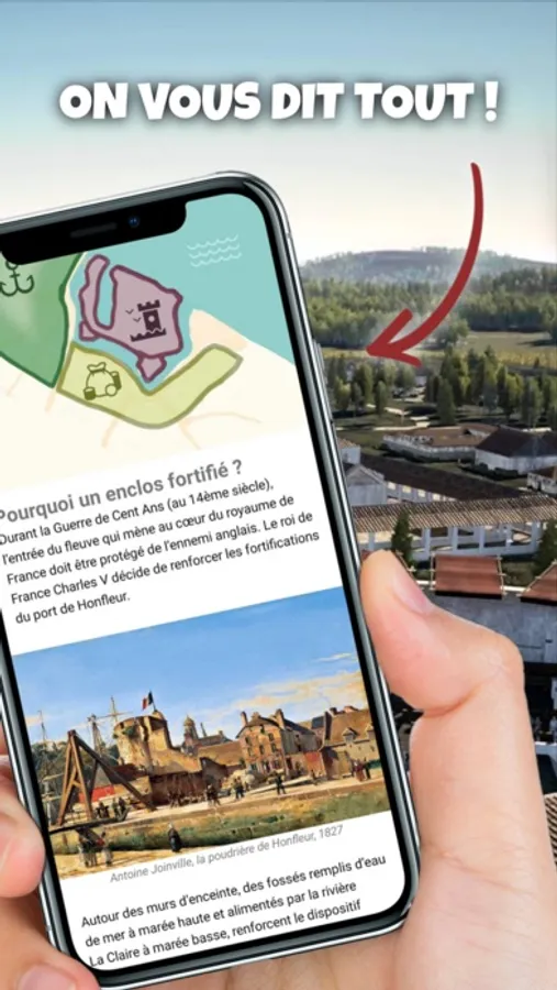 * L'application requiert l'accès à la géolocalisation pour afficher les destinations les plus proches, et l'accès au stockage pour télécharger en hors-ligne les contenus des parcours