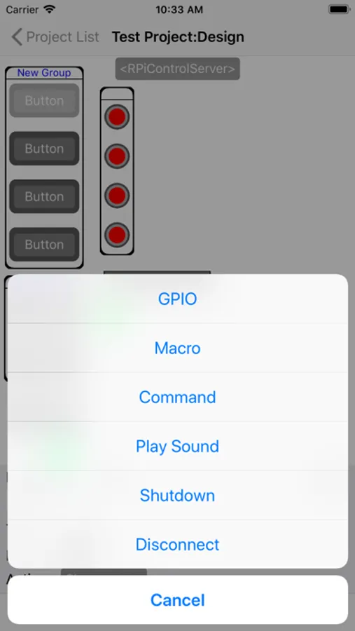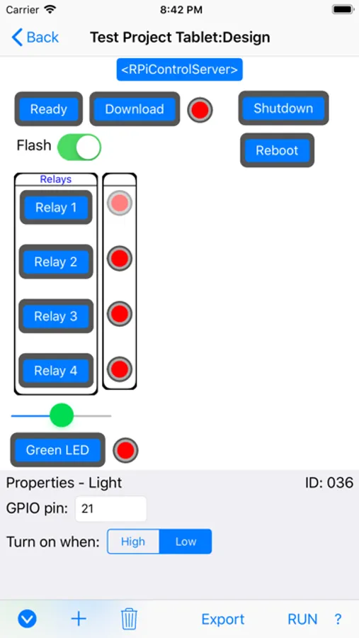 - In each project create a custom control layout using a drag/drop, fill in the blank, graphical interface. Add buttons, switches, lights, etc.