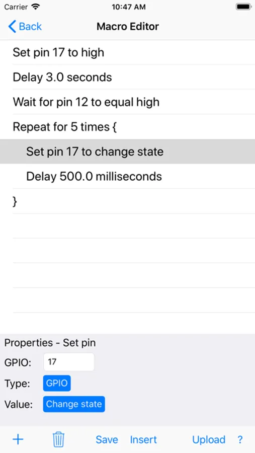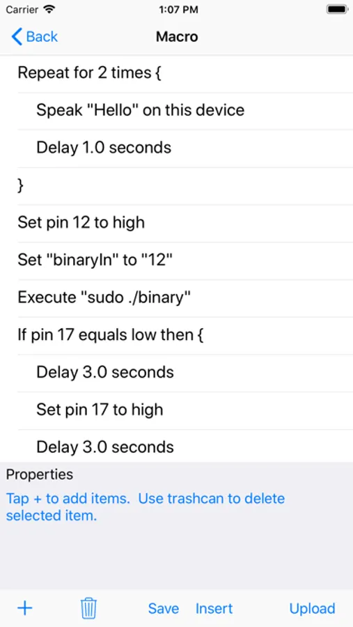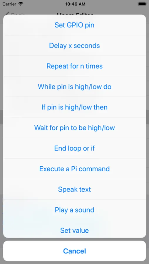 Want to run a macro without having to connect to your phone? No problem, just upload the macro to your Pi. You'll be able to launch it from the phone and then disconnect. Or, have the macro run on the Pi automatically at startup. Run multiple macros at the same time from the phone or on the Pi!